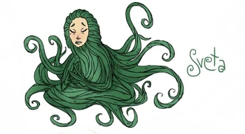 Sveta is little more than a very pale face with thin tendrils streaming around it like hair.[4] Small organs dangle from the largest of the tendrils that extends from the back of her face while a small "C" is tattooed on her cheekbone.[5][6] She speaks with a soft Russian accent.[7]