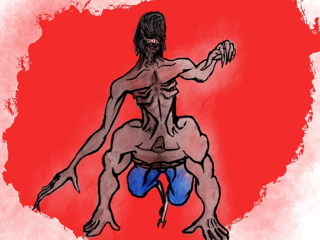 Pagoda resembled a centaur. His lower half was likely Carnal, comprising of a large, muscled body built like a gorilla. His top half was likely Prophet, growing up from where Carnal's head should have been, appearing to be a thin man with greasy brown hair and a beard.