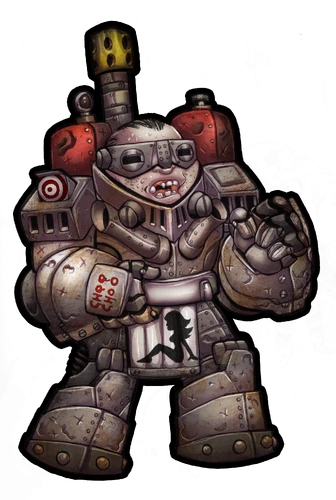 He is best described as a "crude" specialty resource combat tinker,[10][11] who can work with scrap and develop something that works surprisingly well from what should be inferior components.[12] His gear is fairly limited, he is almost incapable of making anything 'fancy', but he can build it fast, build it durable, and he can build it from parts as common as a rusted old car.[2]