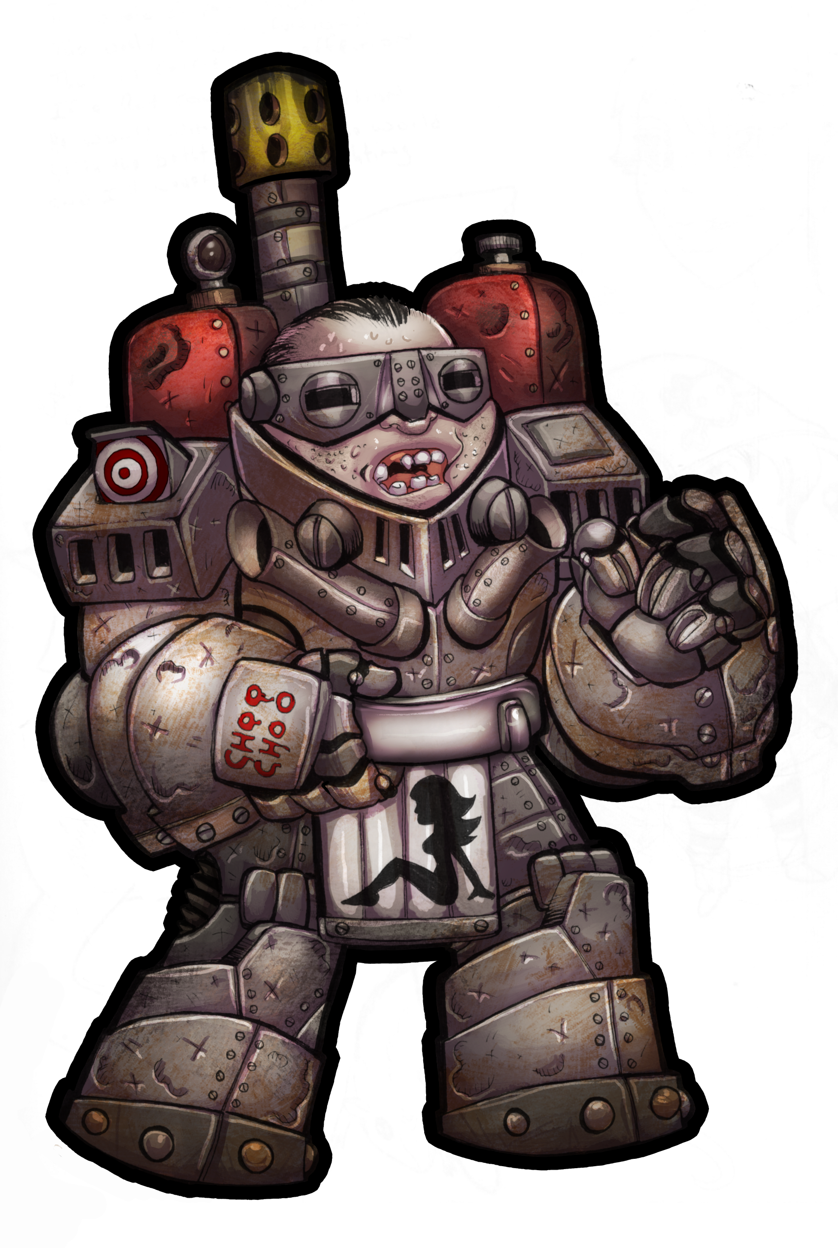 In practice Trainwreck largely stuck to using a single set of 'Crude' power armor that he maintained, though he could create other gear and weapons.[1] This suit gave him enough strength and durability to defeat Armsmaster when he caught the protectorate hero by surprise.[7] When he operated as a cape he drove the suit without needing to use proper limbs. His suits limbs do not actually enclose any part of him allowing people like Faultline to sever them with a touch.